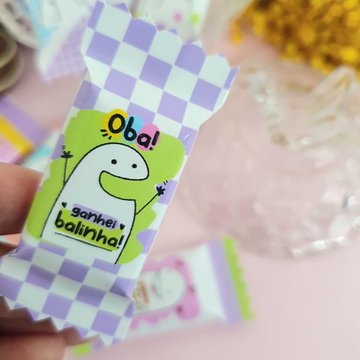 Balas personalizadas mastigáveis sabor iogurte.