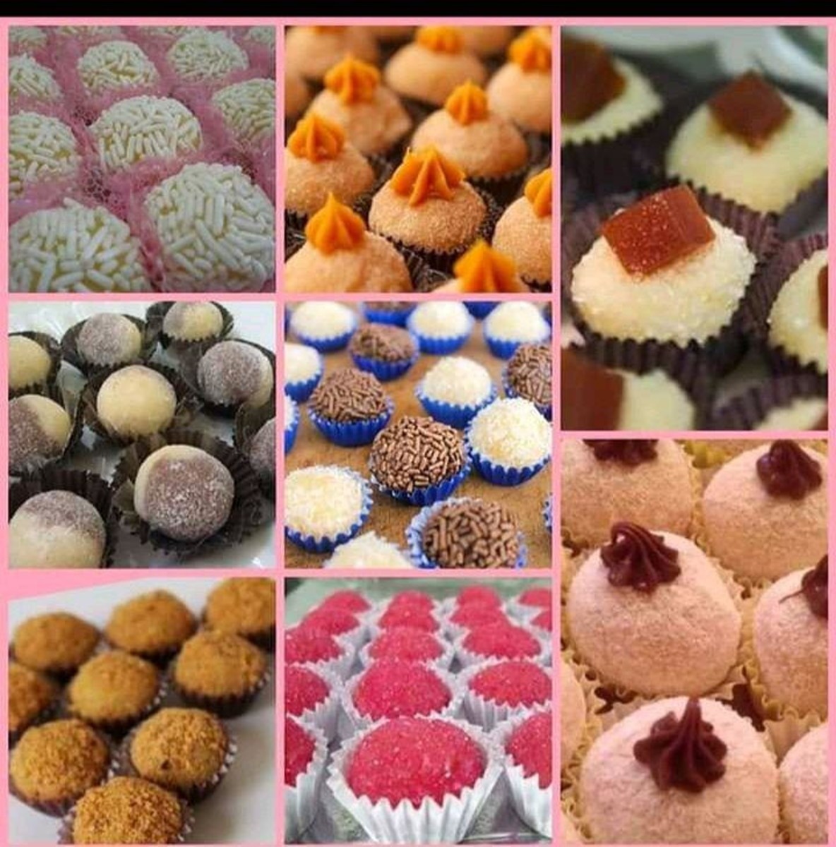 Brigadeiro, beijinho, casadinho, churros, paçoca, queijo, Morango, cajuzinho, Brigadeiro branco, leite ninho, prestígio.