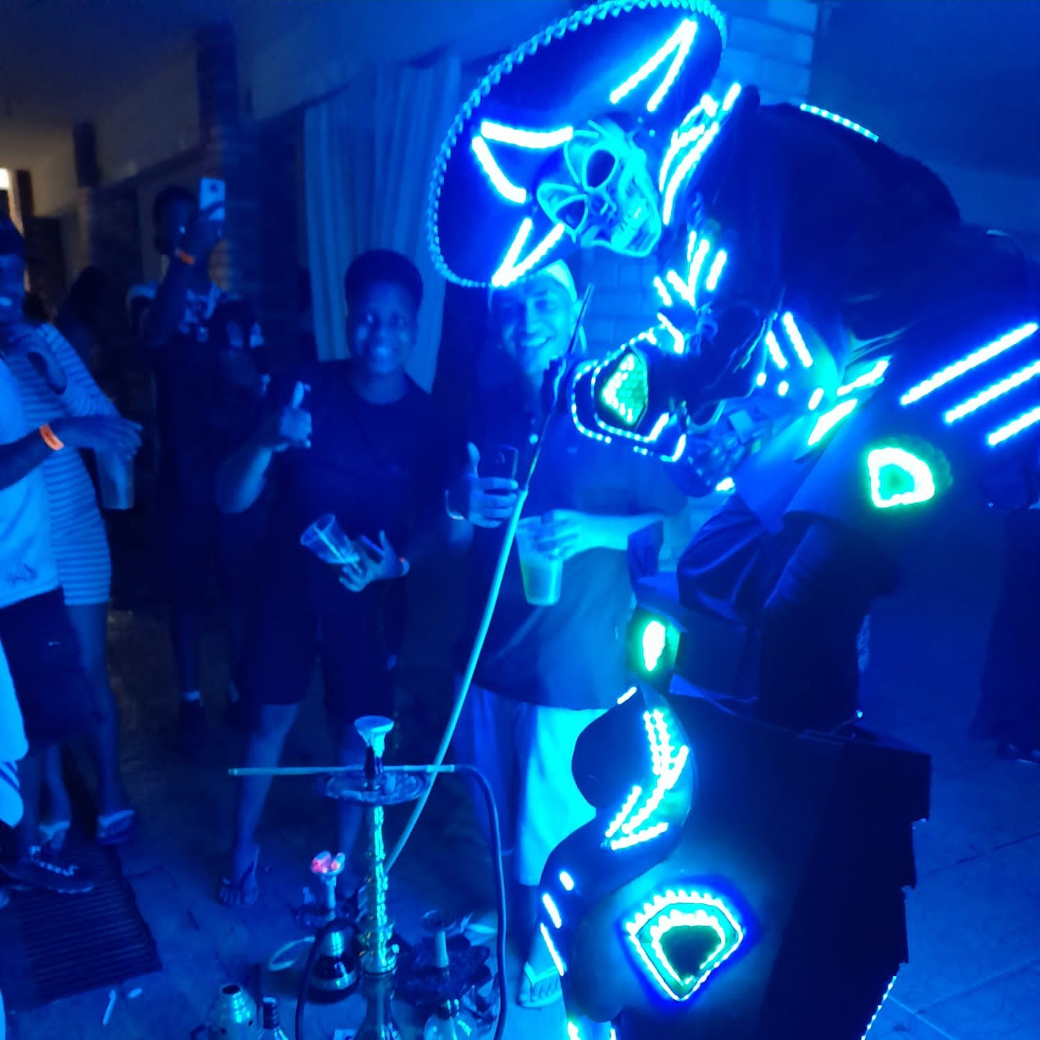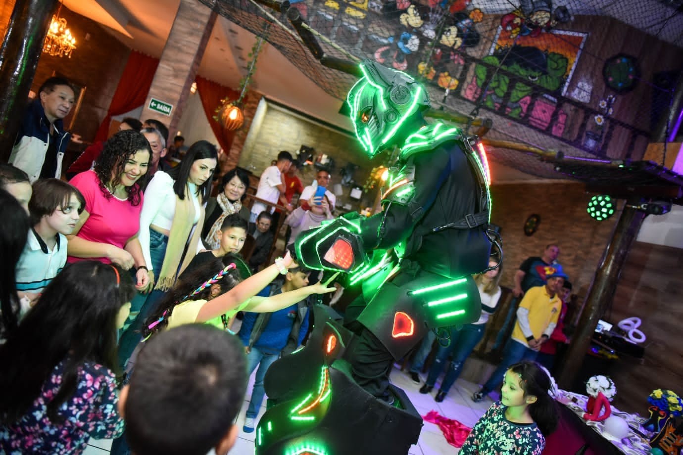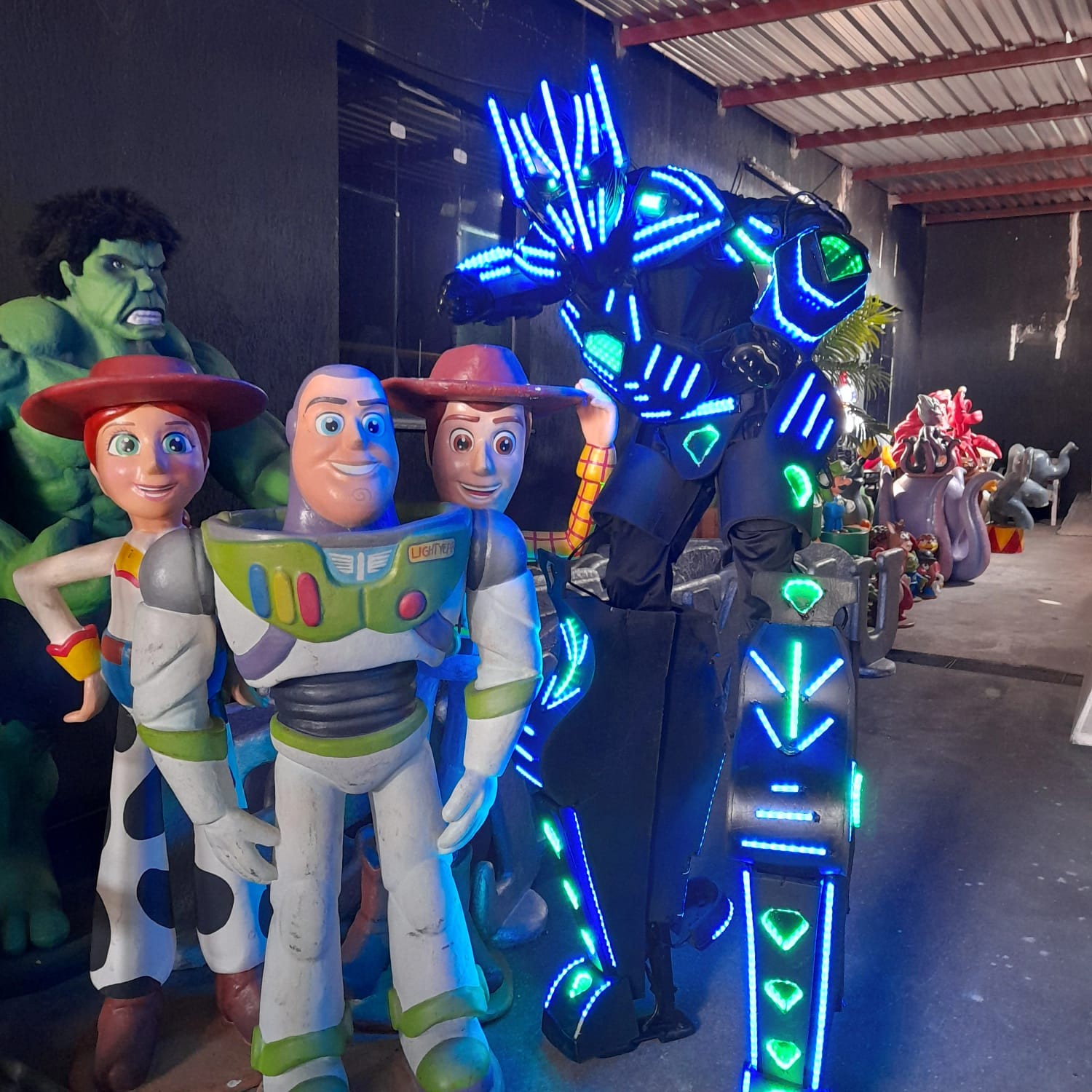 Na apresentação acompanha ao nosso robô de led MegaBoots, uma bazuca de Co2 e um ajudante para auxiliar o robô em toda a apresentação
